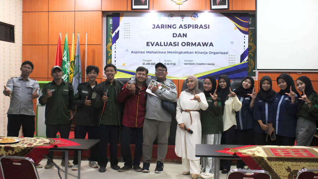 SIDOARJO — Upaya penguatan tata kelola organisasi kemahasiswaan terus dilakukan oleh Badan Eksekutif Mahasiswa Fakultas Teknik (BEM FT) Universitas Nahdlatul Ulama Sidoarjo (UNUSIDA) melalui kegiatan bertajuk ‘Jaring Aspirasi dan Evaluasi Ormawa’. Agenda ini digelar di Ruang Auditorium Lantai 5, Kampus 2 UNUSIDA, Ahad (22/6/2025) lalu.