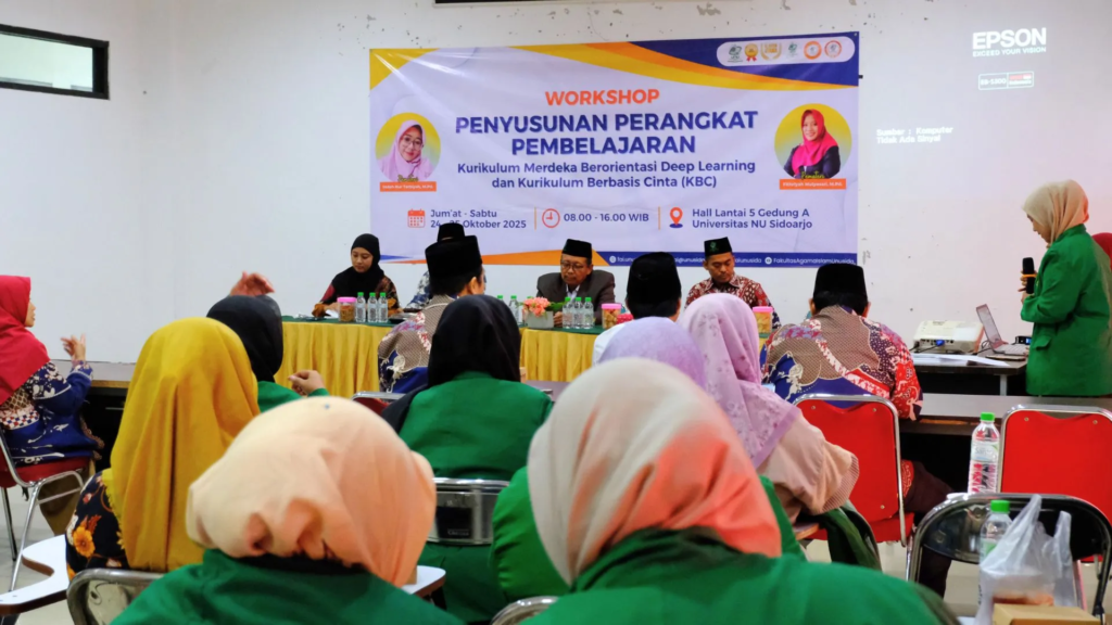 SIDOARJO — Fakultas Agama Islam (FAI) Universitas Nahdlatul Ulama Sidoarjo (UNUSIDA) sukses menyelenggarakan Workshop Penyusunan Perangkat Pembelajaran Kurikulum Merdeka Berorientasi Deep Learning dan Kurikulum Berbasis Cinta (KBC) yang dilaksanakan di Hall Lantai 4 Gedung A Universitas NU Sidoarjo, Jum’at-Sabtu (24-25/10/2025).