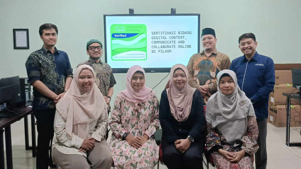 SIDOARJO — Fakultas Ilmu Komputer (FILKOM) Universitas Nahdlatul Ulama Sidoarjo (UNUSIDA) kembali menghadirkan kegiatan Sertifikasi Cisco Networking Academy sebagai wujud komitmen peningkatan kompetensi mahasiswa, dosen, dan tenaga kependidikan di bidang teknologi jaringan.