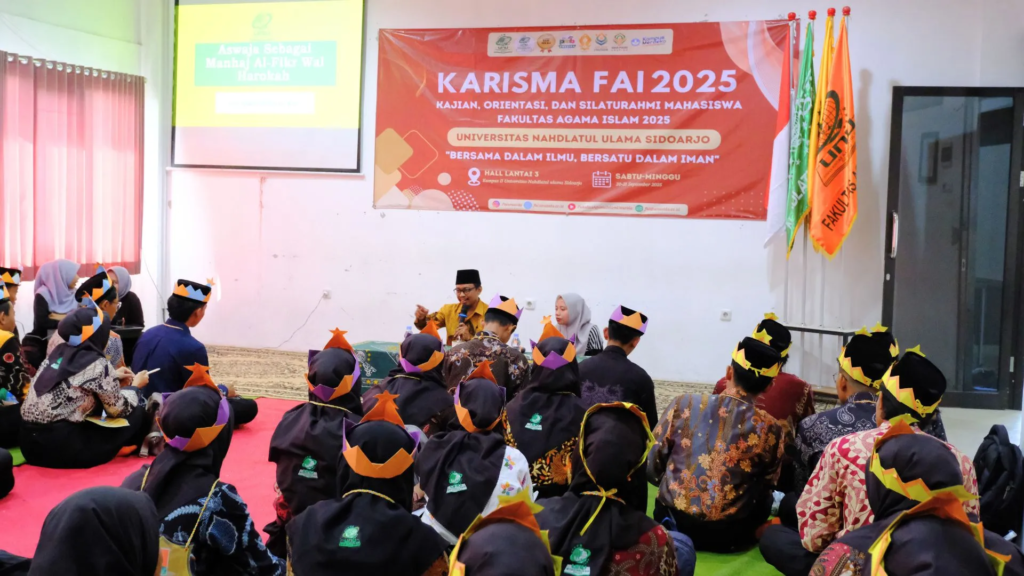 SIDOARJO — Fakultas Agama Islam (FAI) Universitas Nahdlatul Ulama Sidoarjo (UNUSIDA) menyelenggarakan kegiatan Kajian, Orientasi, dan Silaturrahmi Mahasiswa (KARISMA) FAI 2025 di Lantai 3 Kampus 2 UNUSIDA, Lingkar Timur Sidoarjo, Sabtu–Ahad (20–21/9/2025). Kegiatan ini mengusung tema ‘Bersama dalam Ilmu, Bersatu dalam Iman’ dan diikuti oleh seluruh mahasiswa baru FAI sebagai bekal sebelum melaksanakan kuliah.