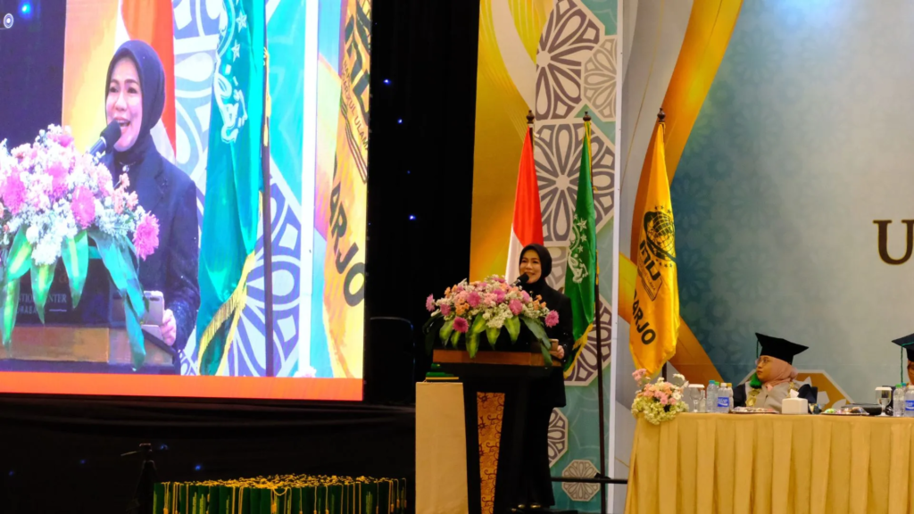 SURABAYA – Ketua Lembaga Layanan Pendidikan Tinggi (LLDIKTI) Wilayah 7 Jawa Timur, Prof. Dr. Dyah Sawitri, S.E., M.M., memberikan sambutan penuh pesan moral dan motivasi dalam Wisuda IX Universitas Nahdlatul Ulama Sidoarjo (UNUSIDA) yang meluluskan 573 wisudawan. Kegiatan tersebut dipusatkan di Dyandra Convention Center, Surabaya, Sabtu (6/9/2025).