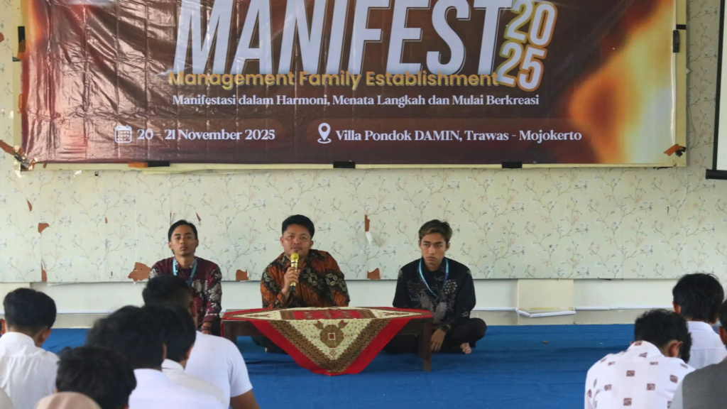 TRAWAS – Himpunan Mahasiswa Manajemen (HIMA Manajemen) UNUSIDA memberikan penguatan fundamental kepada mahasiswa baru melalui sesi pengenalan visi dan misi Program Studi Manajemen dalam rangkaian kegiatan yang bertajuk Management Family Establishment (MANIFEST) 2025. Kegiatan yang digelar di Villa Pondok Darul Mutta’allimin, Trawas, Mojokerto pada 20–21 Oktober 2025 tersebut menghadirkan Kepala Program Studi Manajemen, Mustaqim, S.E., M.M sebagai narasumber utama.