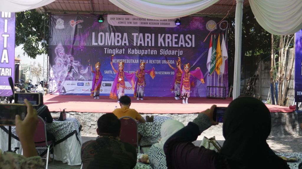 SIDOARJO — Unit Kegiatan Mahasiswa (UKM) Samita Trance Universitas Nahdlatul Ulama Sidoarjo (UNUSIDA) sukses menggelar Lomba Tari Kreasi Tingkat Kabupaten Sidoarjo yang diikuti oleh puluhan pelajar tingkat TK-SMA. Kompetisi yang memperebutkan Piala Rektor UNUSIDA untuk dipusatkan di Art Center Dewan Kesenian Sidoarjo (Dekesda), alan Airlangga 67, Sidoarjo, Sabtu (9/8/2025).