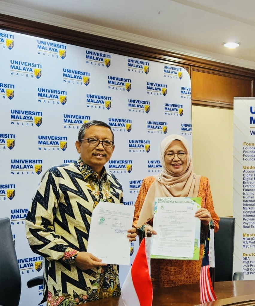 Malaysia, 10 September 2025 – Universitas Nahdlatul Ulama Sidoarjo (UNUSIDA) kembali mencatatkan langkah penting dalam upaya internasionalisasi, dengan resmi menandatangani Memorandum of Understanding (MoU) bersama Universiti Malaya Wales (UMW), sebuah institusi pendidikan terkemuka di Malaysia. Kesepakatan strategis ini merupakan wujud nyata komitmen UNUSIDA untuk memperluas jaringan akademik, meningkatkan mutu pendidikan, dan menguatkan relevansi riset di tingkat internasional. MoU ini menjadi landasan kerja sama timbal balik antara UNUSIDA dan UMW. Ruang lingkup kerja sama mencakup beragam kegiatan dan program yang berfokus pada kolaborasi akademik, dengan tetap mematuhi ketersediaan dana dan regulasi yang berlaku di masing-masing universitas.
