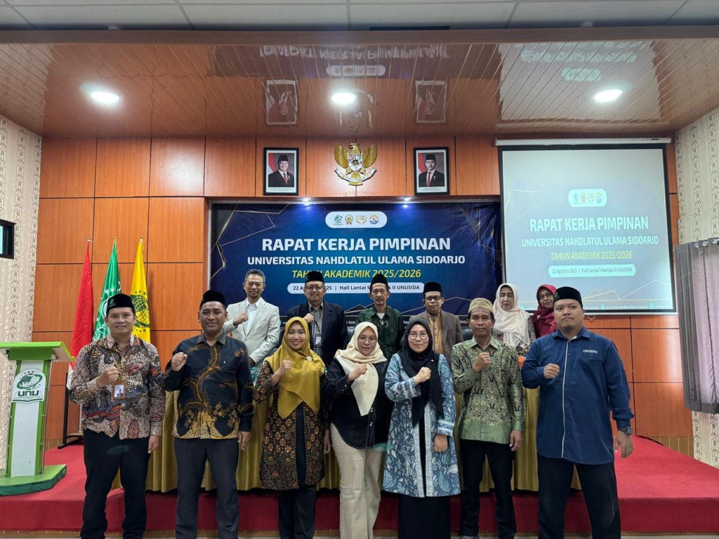 SIDOARJO, 20 Agustus 2025 — Universitas Nahdlatul Ulama Sidoarjo (UNUSIDA) menyelenggarakan Rapat Kerja Pimpinan (Rakerpim) Tahun Akademik 2025–2026 dengan fokus utama memperkuat tata kelola perguruan tinggi, memaksimalkan pemanfaatan sumber daya, dan memastikan arah strategis universitas terjalin dengan baik dari pimpinan tertinggi hingga unit pelaksana di bawahnya. Kegiatan yang berlangsung di Auditorium Lantai 5 Kampus 2 UNUSIDA yang dihadiri seluruh jajaran pimpinan universitas, dekan fakultas, kepala program studi, kepala UPT, lembaga, biro, bagian, divisi serta perwakilan Lembaga Perguruan Tinggi Pengurus Besar Nahdlatul Ulama (LPT PBNU).