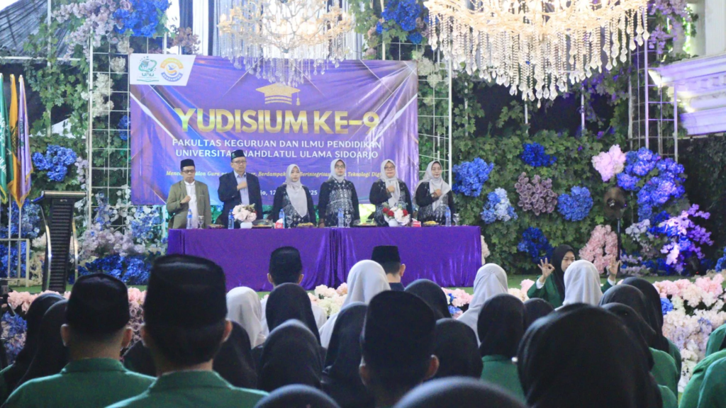 SIDOARJO – Fakultas Keguruan dan Ilmu Pendidikan (FKIP) Universitas Nahdlatul Ulama Sidoarjo (UNUSIDA) menggelar Yudisium ke-9 dengan tema ‘Mencetak Calon Guru yang Visioner, Berdampak, dan Berintegritas di Era Teknologi Digital’. Kegiatan ini dipusatkan di Jie Poek DW, Jl. Sunandar Priyo Sudarmo, Larangan blok Ruko Royal Palace Larangan BlokN9-12 dan Blok M15-18, Kabupaten Sidoarjo, Selasa (12/8/2025).
